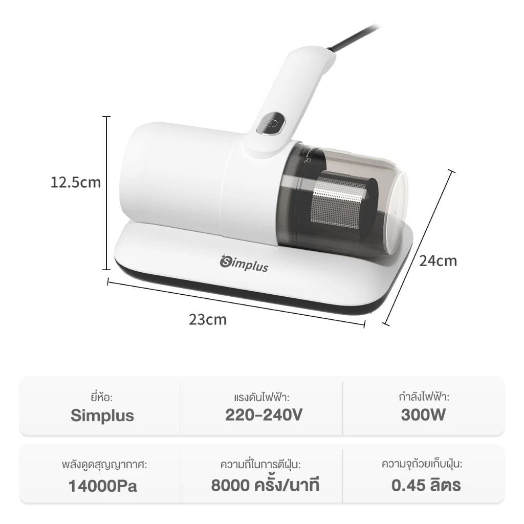 Simplus เครื่องกำจัดไรฝุ่น 14000pa , กำจัดไร , ตีด้วยความถี่สูง , ดูดฝุ่นบนเตียง , ทำความสะอาดพรม , ดูดเส้นผม CMYH004