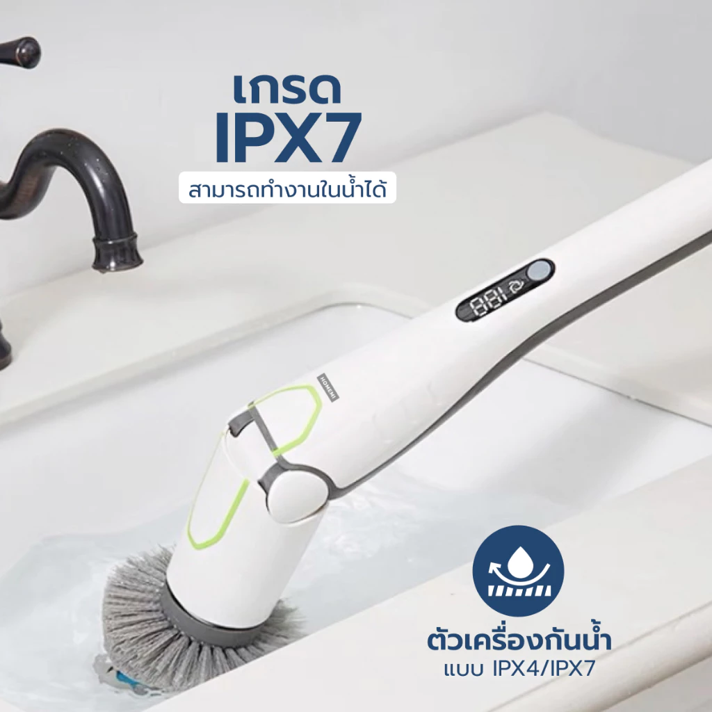 Qimedo แปรงทำความสะอาดไฟฟ้า 1500 RPM ขัดห้องน้ำไฟฟ้า แถมหัวเปลี่ยน 8 แบบ (ขัดห้องน้ำ ขัดพื้น) Electric Spin Scrubber