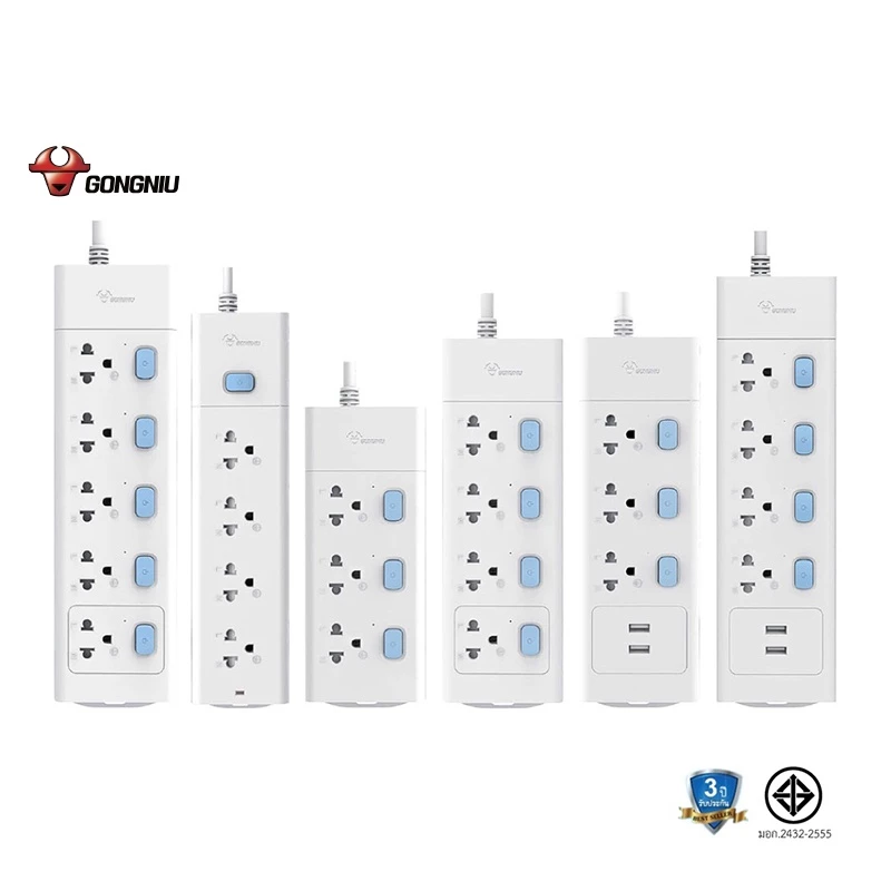 ปลั๊ก Gongniu ของแท้ พร้อมช่องเสียบUSB ปลั๊ก3ตา 3-6 ช่อง พร้อมสวิตช์ควบคุมอิสระ ปลั๊กไฟ 3-5 เมตร ของแท้ ได้มาตรฐาน