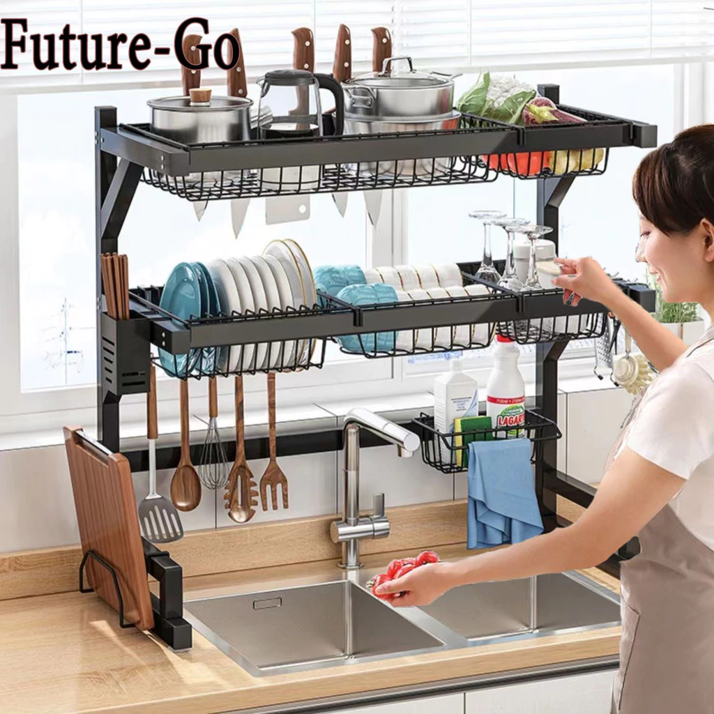 ชั้นวางจาน ที่วางจาน สแตนเลส 2 ชั้น คร่อมอ่างล้างจาน ชั้นวางของในครัว bowl rack รุ่นอัพเกรด โต๊ะเก็บของ ชั้นวางชาม