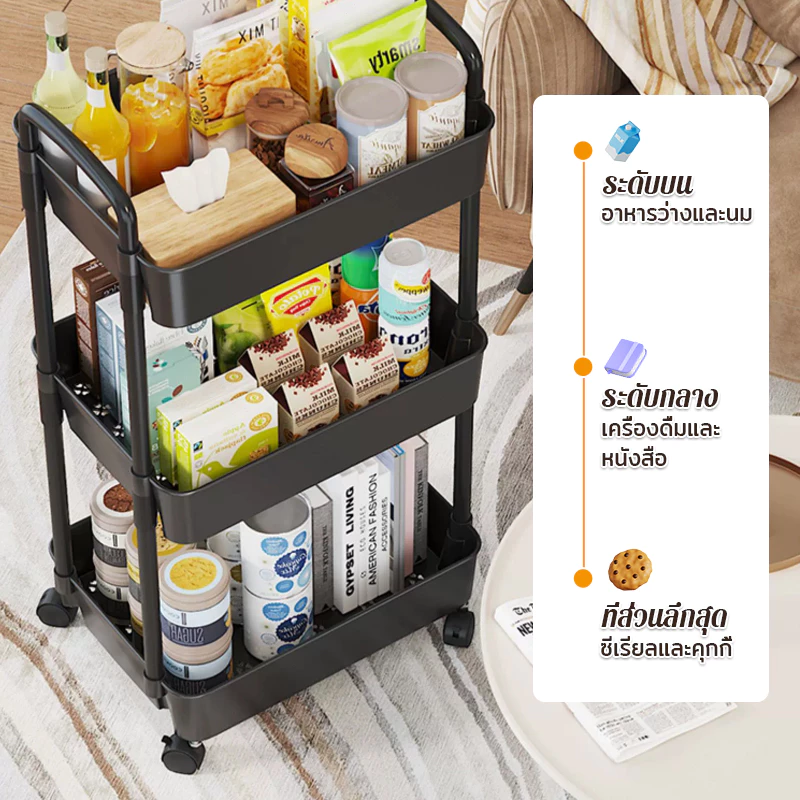 ชั้นวางของรถเข็นพลาสติก 3/4/5ชั้น พร้อมล้อเลื่อน+ที่จับ เคลื่อนย้ายสะดวก วางของในครัว รุ่นฮิต พร้อมส่ง!